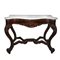 Consolle Luigi Filippo in legno di noce marmo al piano fronte intagliato gambe curve intagliate raccordate alla base da traverse convergenti al centro, 19° secolo