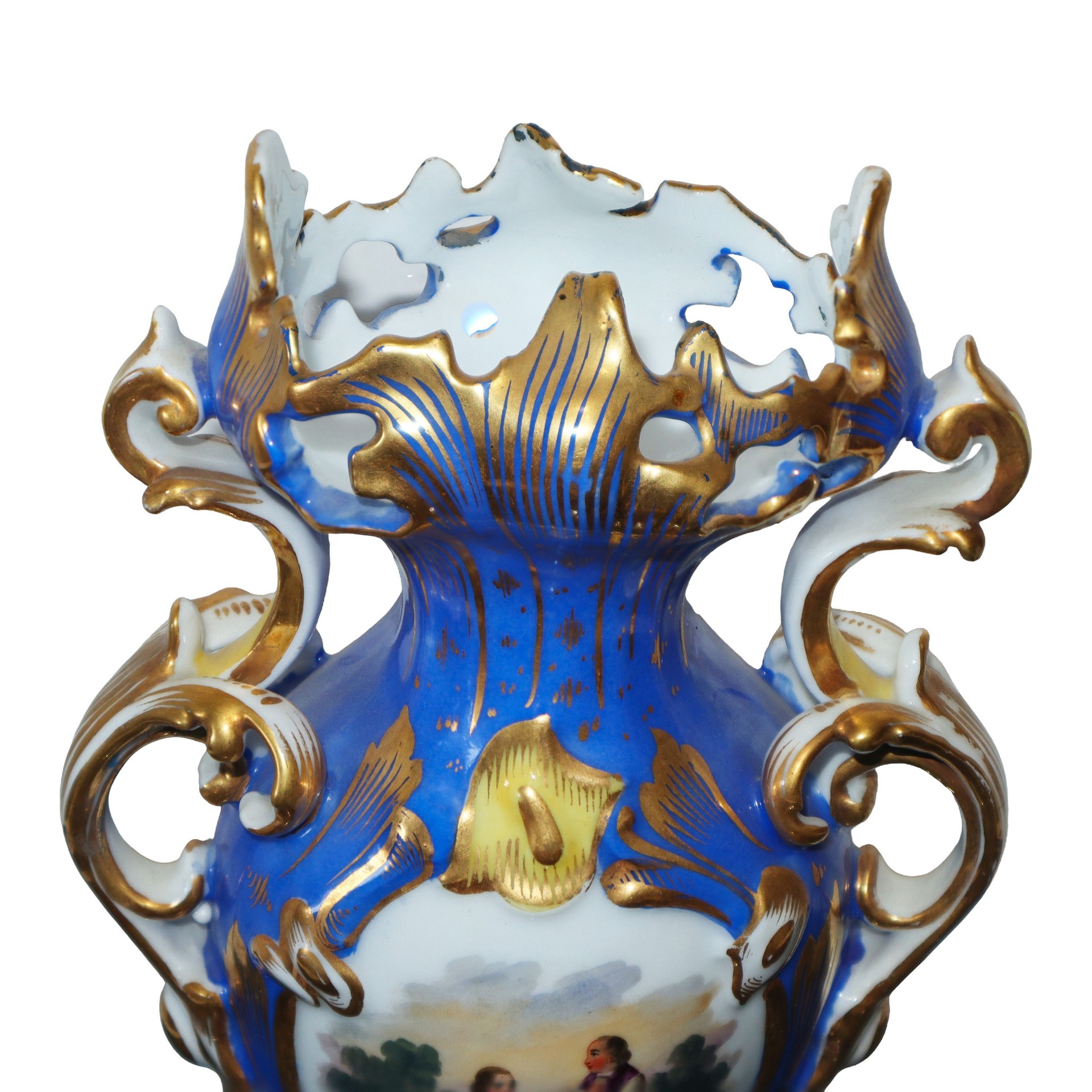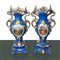 Coppia di vasi in porcellana Luigi Filippo blu e dorati con decori floreali, France 19° secolo
