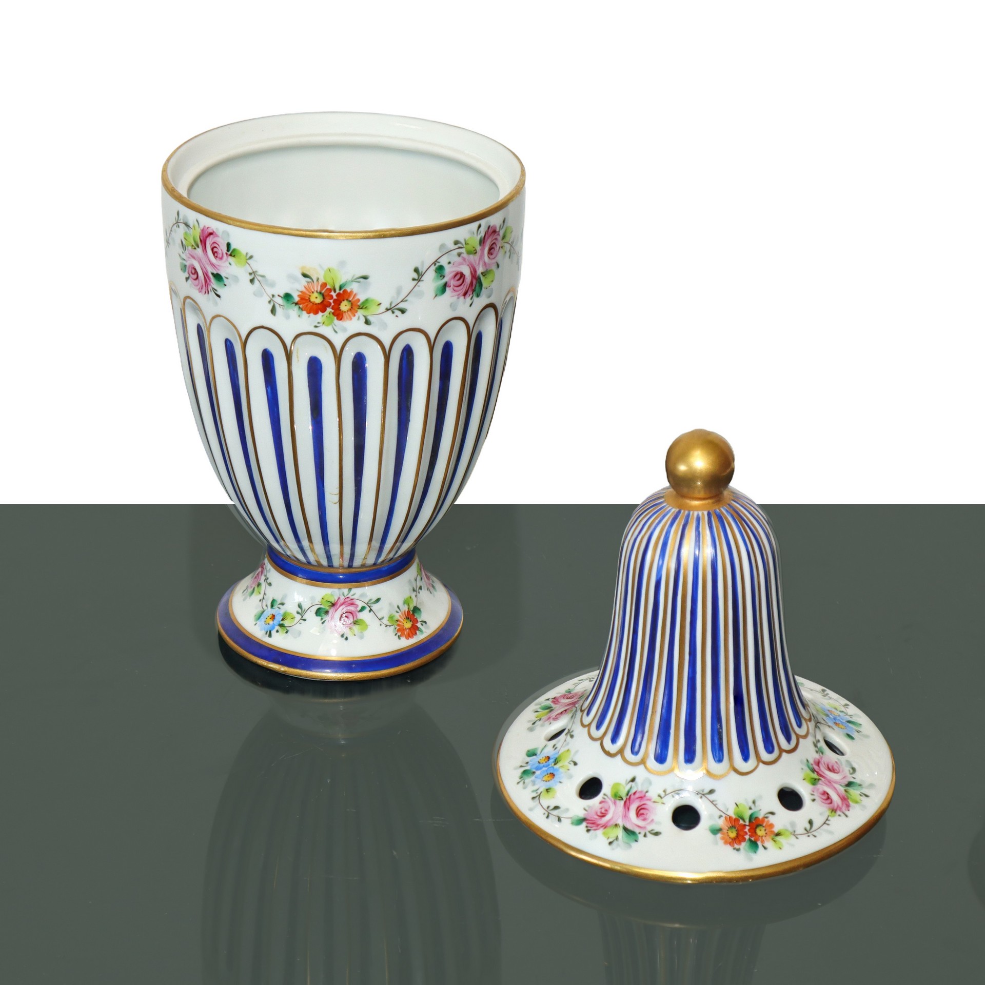 Limoges - Coppia di poutiche con decori floreali e inserti blu e dorati, 20° secolo