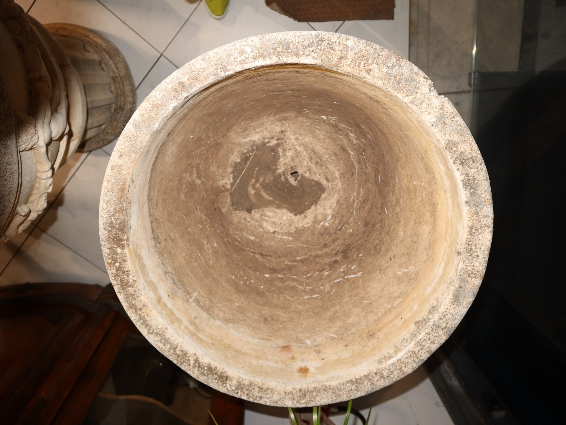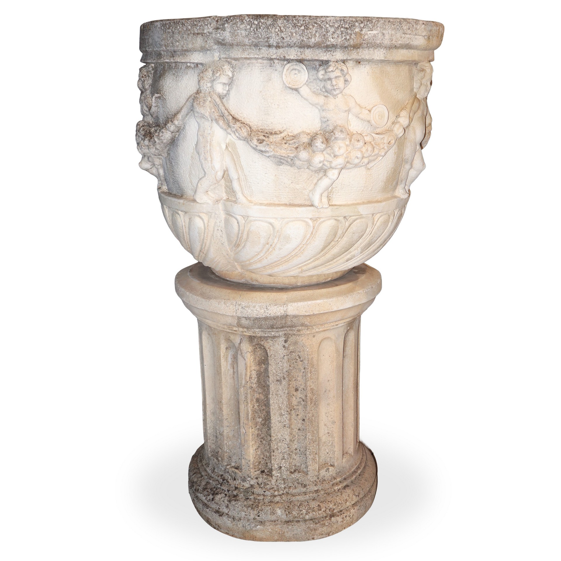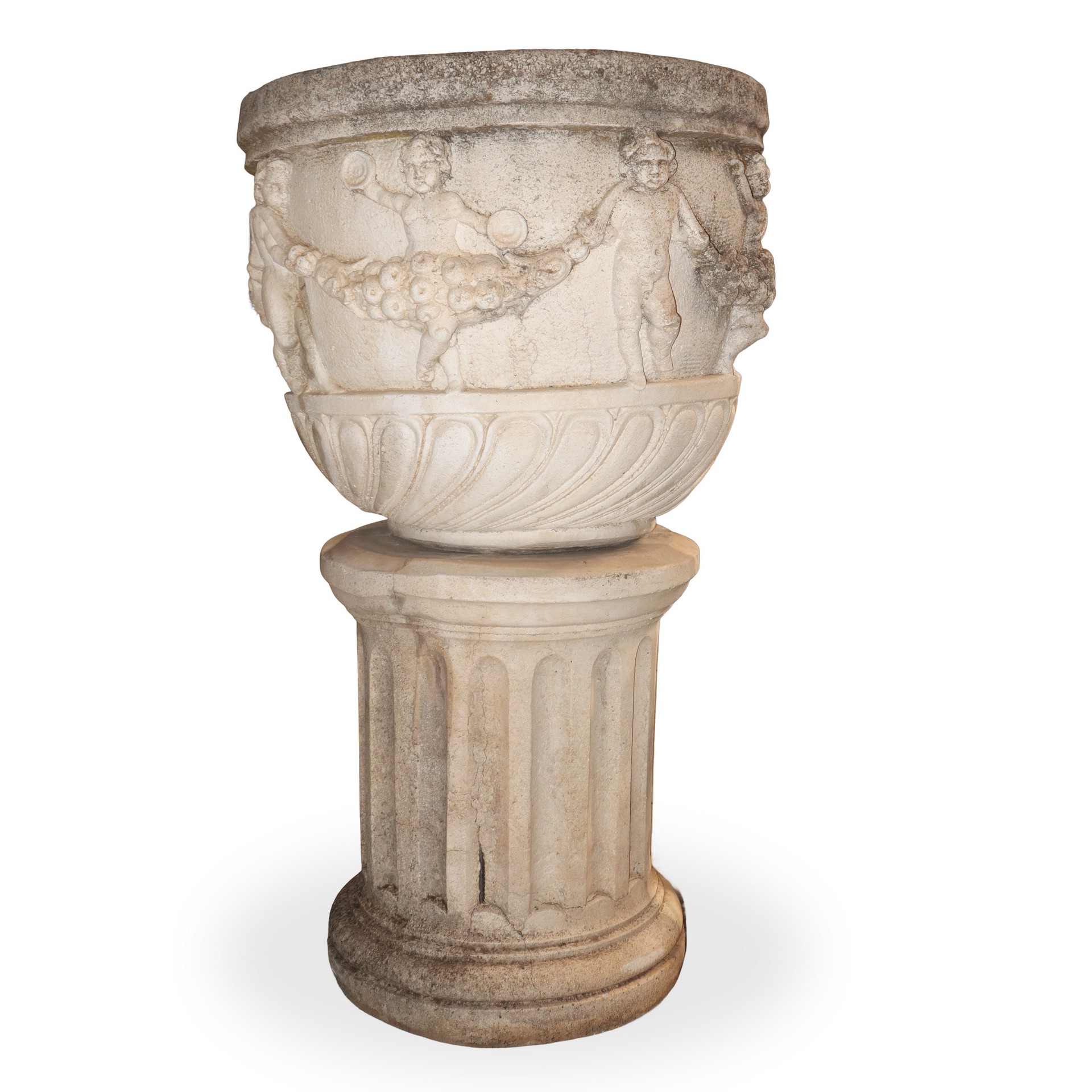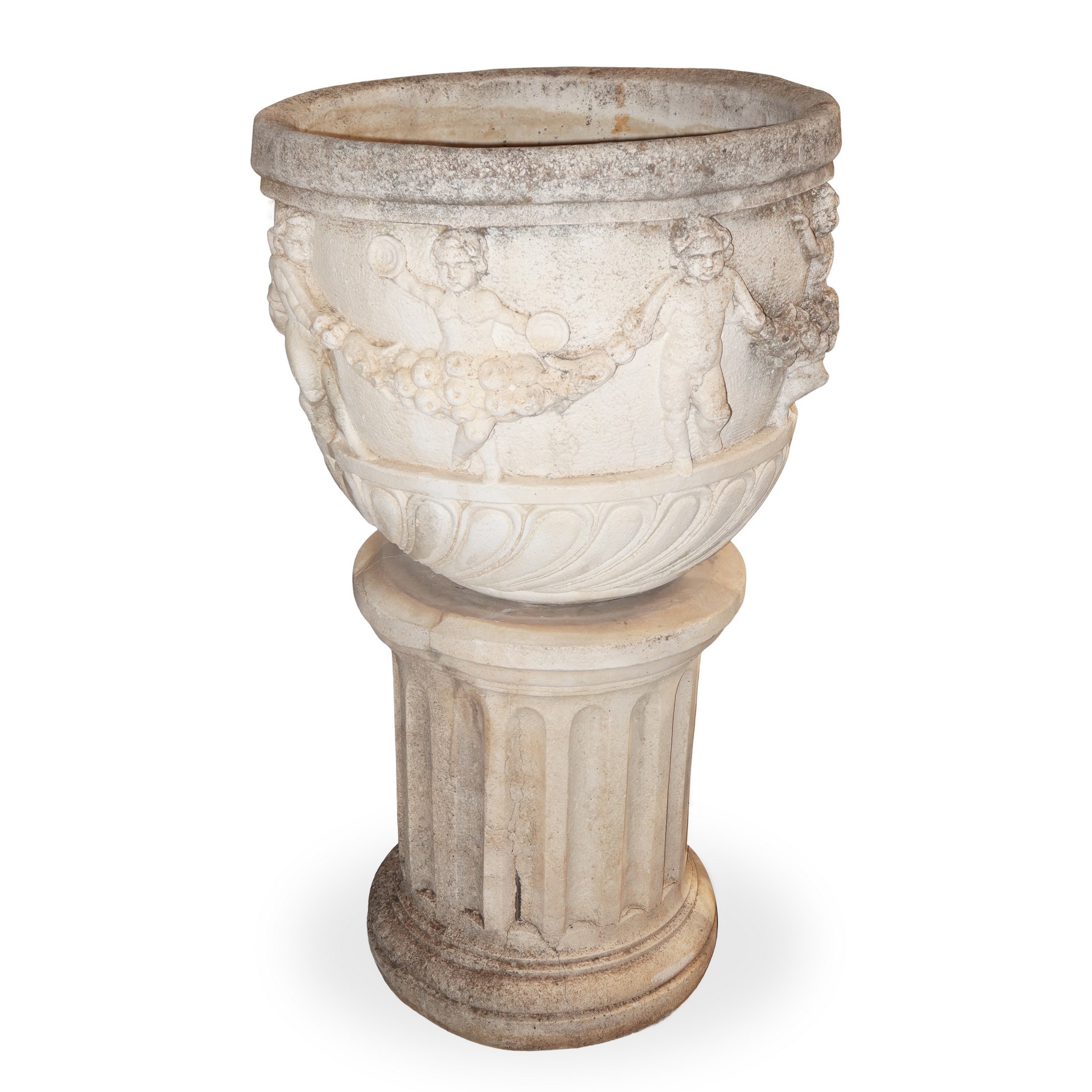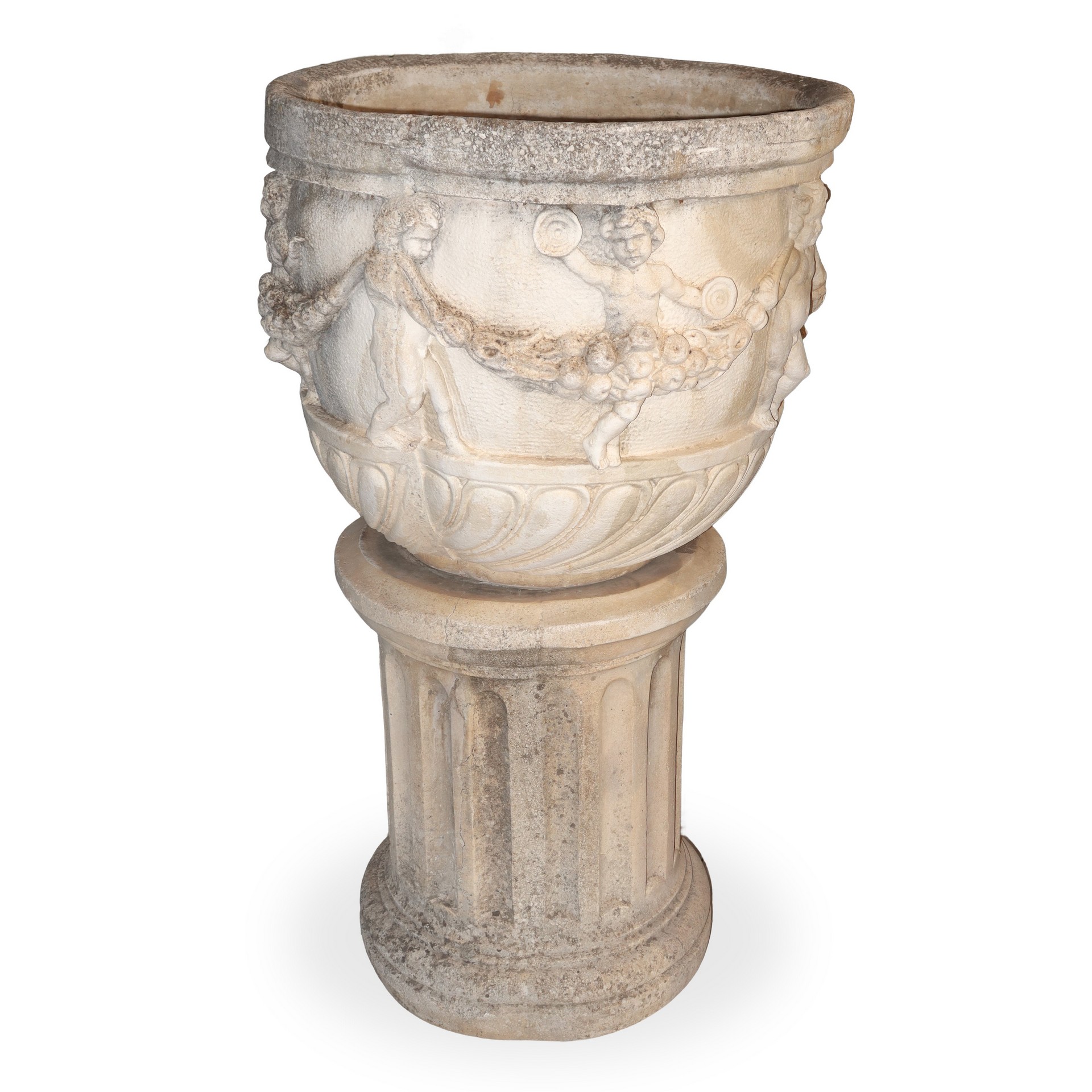 Coppia di vasi in malta cementizia con base a colonna