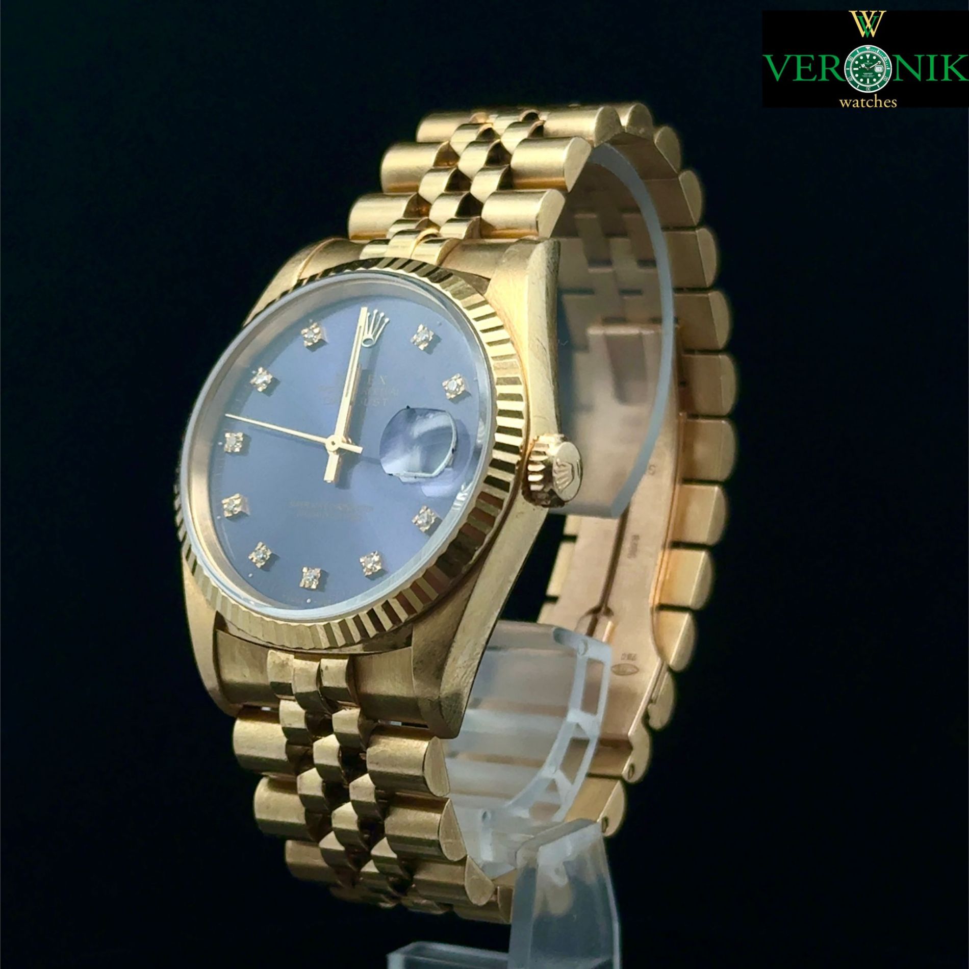 Marca Rolex Modello (Orologio) Datejust 36 Numero di referenza 16238 (Datejust Diamanti) Carica Automatico Materiale della cassa Oro giallo Materiale cinturino Oro giallo Anno di produzione 1992 Condizione Usato (Ottimo) L'articolo presenta segni di usura lievi, come ad esempio graffi leggeri, ma non percepibili al tatto. Corredo Con documenti originali Materiale della cassa Oro giallo Diametro 36 mm Prova Materiale lunetta Oro giallo Vetro Vetro zaffiro Quadrante Blu diamanti Numeri sul quadrante Senza numeri Cinturino Materiale cinturino Oro giallo Colore cinturino Oro Materiale chiusura Oro giallo - COMMISSIONE D’ASTA 25%