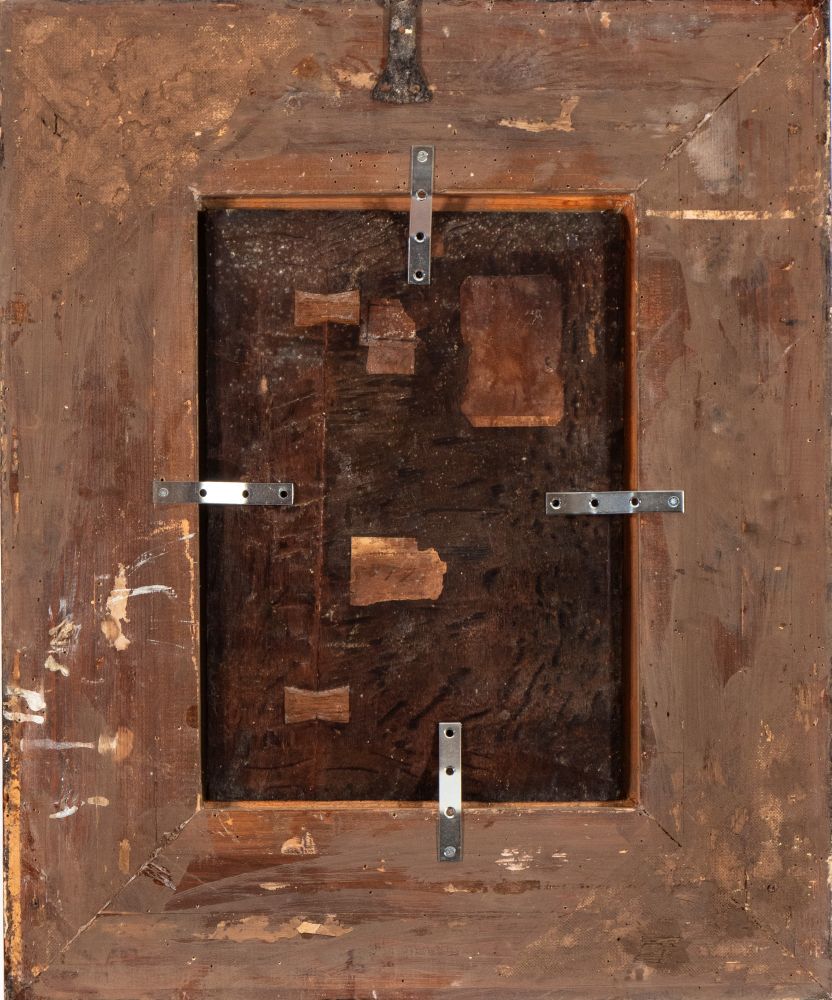 Il dipinto reca al retro della tavola antica etichetta di galleria: "HENRY GRAVES & CO. / 919(?) / 6 PALL MALL LONDON".