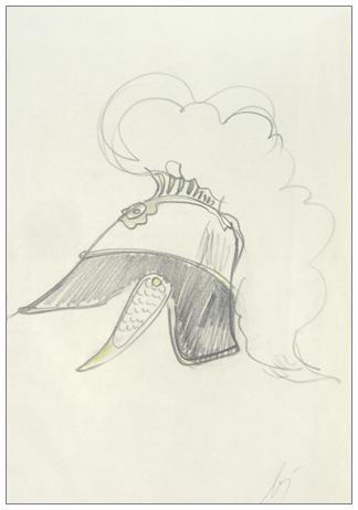 ENRICO BAJ Milano 1924 – Vergiate 2003 Senza titolo (Elmo) Grafite e pastello su carta 35 x 25. Firma in b. a d. Provenienza: galleria Bigi Arte, Firenze.