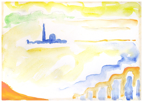 VIRGILIO GUIDI Roma 1891 – Venezia 1984 Senza titolo Gouache e grafite su cartoncino 24,8 x 36. Firma in b. a d.; sul verso timbro e firma galleria Corchia, Massa + timbro galleria Poleschi, Lucca. Autentica dell’autore su foto.