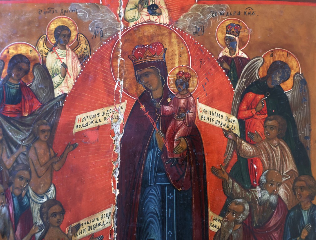 Icona su tavola raffigurante Madre di Dio 'Gioia degli afflitti'