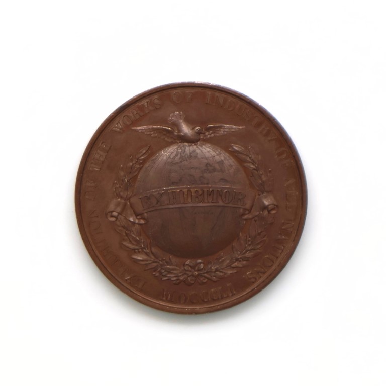 Dritto: Testa nuda del principe Alberto rivolta a sinistra, Scritta: H:R:H: PRINCE ALBERT PRESIDENT OF THE ROYAL COMMISSION, Rovescio Iscrizione all'interno di una corona chiusa, Scritta: FOR SERVICES EXHIBITION OF THE WORKS OF INDUSTRY OF ALL NATIONS. MDCCCLI.