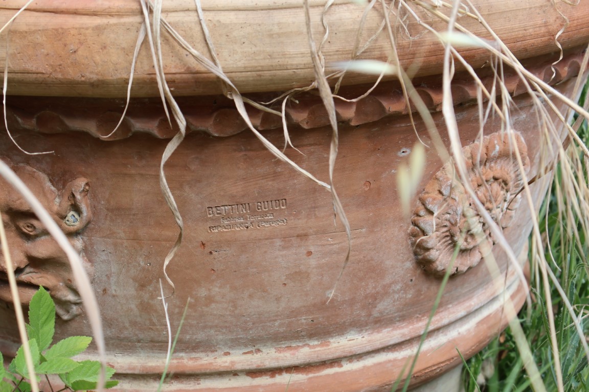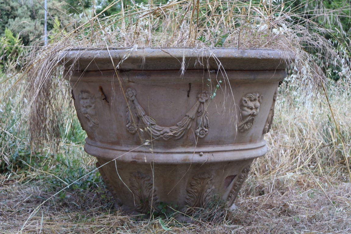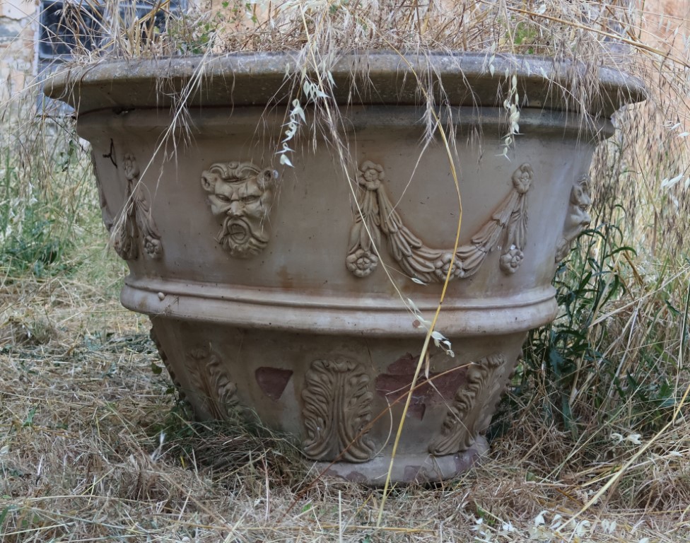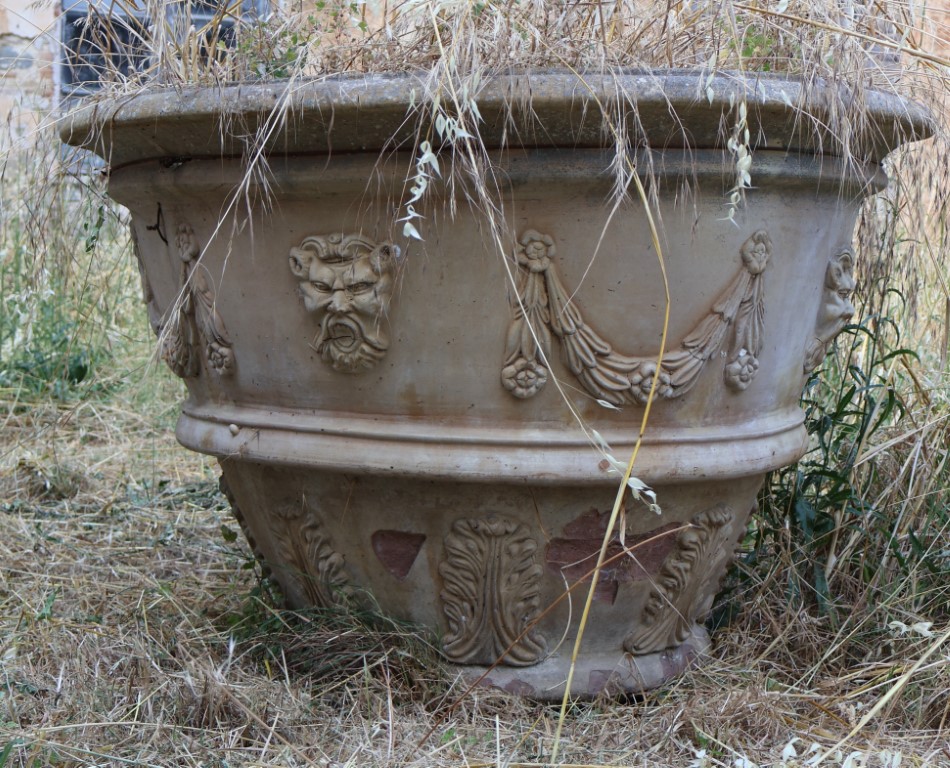 Una decorata con mascheroni e festoni, l'altra con fasce orizzontali.
