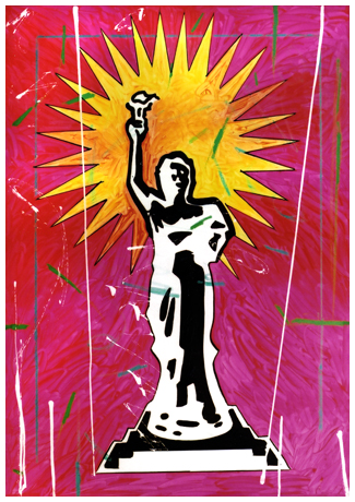 ENRICO MANERA Asmara (Eritrea) 1948 Columbia 2000 Olio e t.m. su tela emulsionata 100 x 70. Firma, data e titolo sul verso.