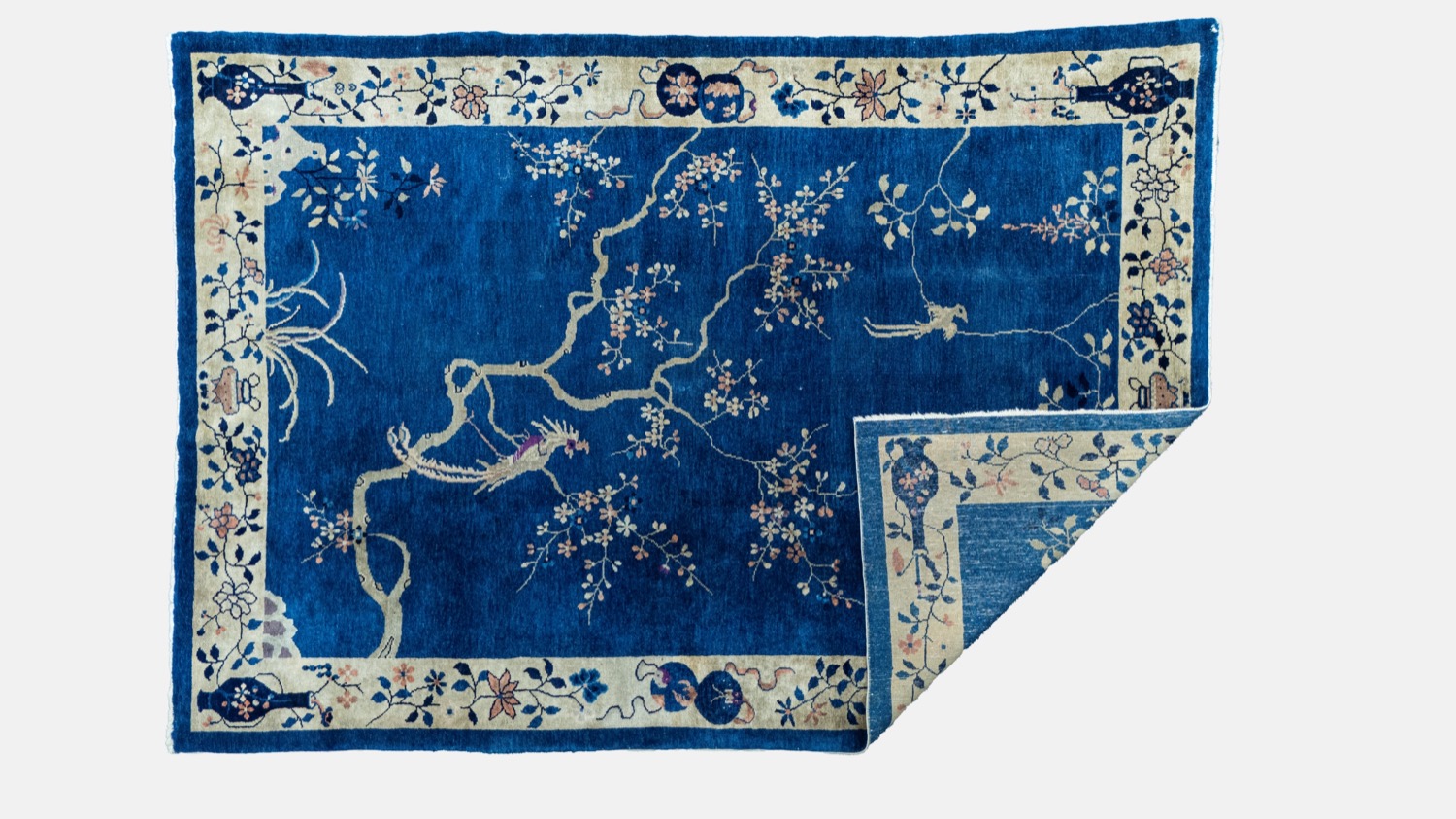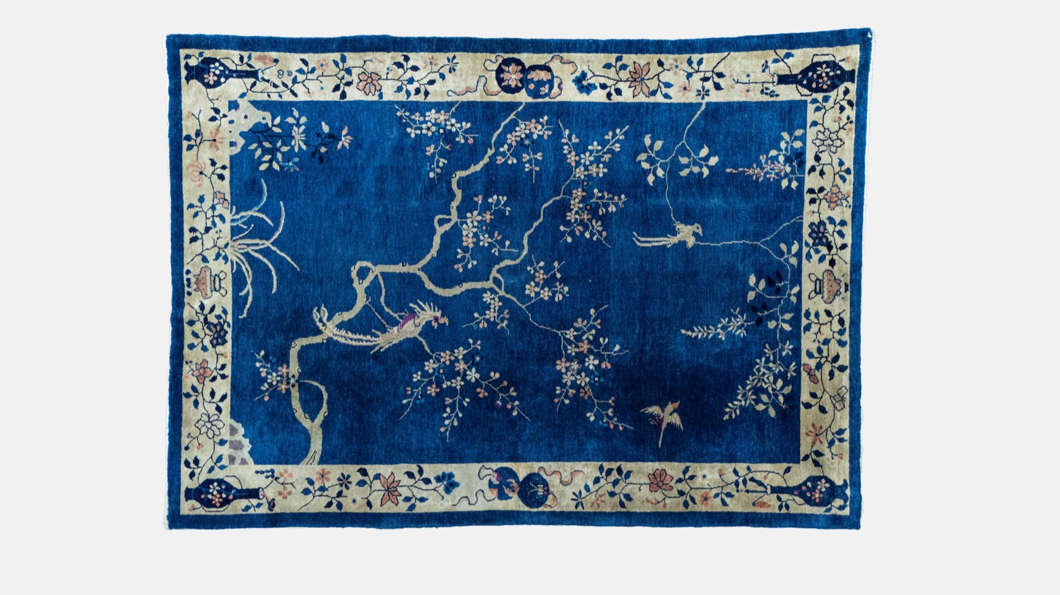 Lotto 11 | Tappeto Pechino a fondo blu con ramo fiorito e volatile
