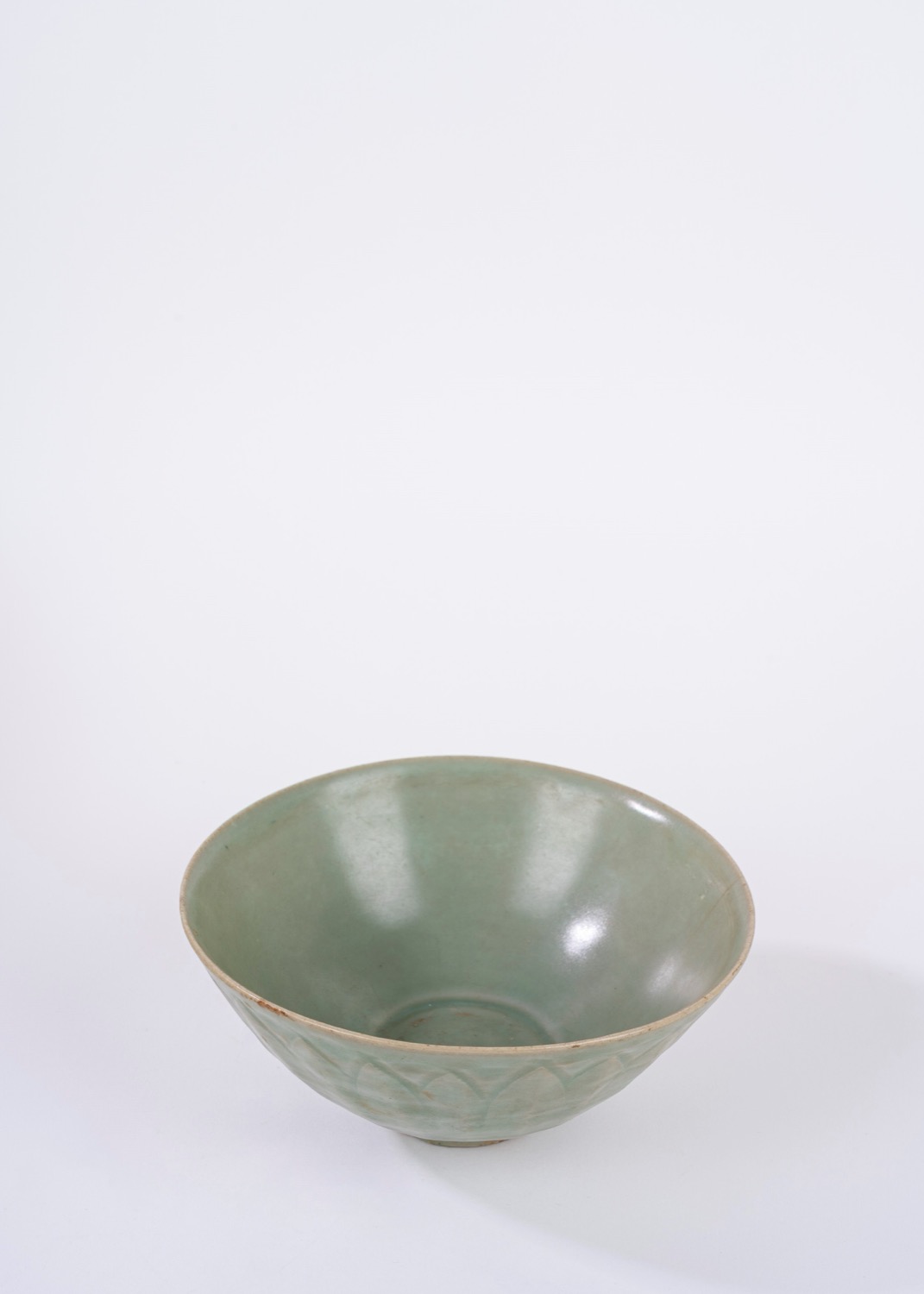 Ciotola a invetriatura Celadon con decoro a fiore di loto a rilievo. Cina, Dinastia Ming (1368-1644)