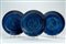 Tre piatti in porcellana con invetriatura powder blue e decori dorati. Cina, secolo XVIII/XIX