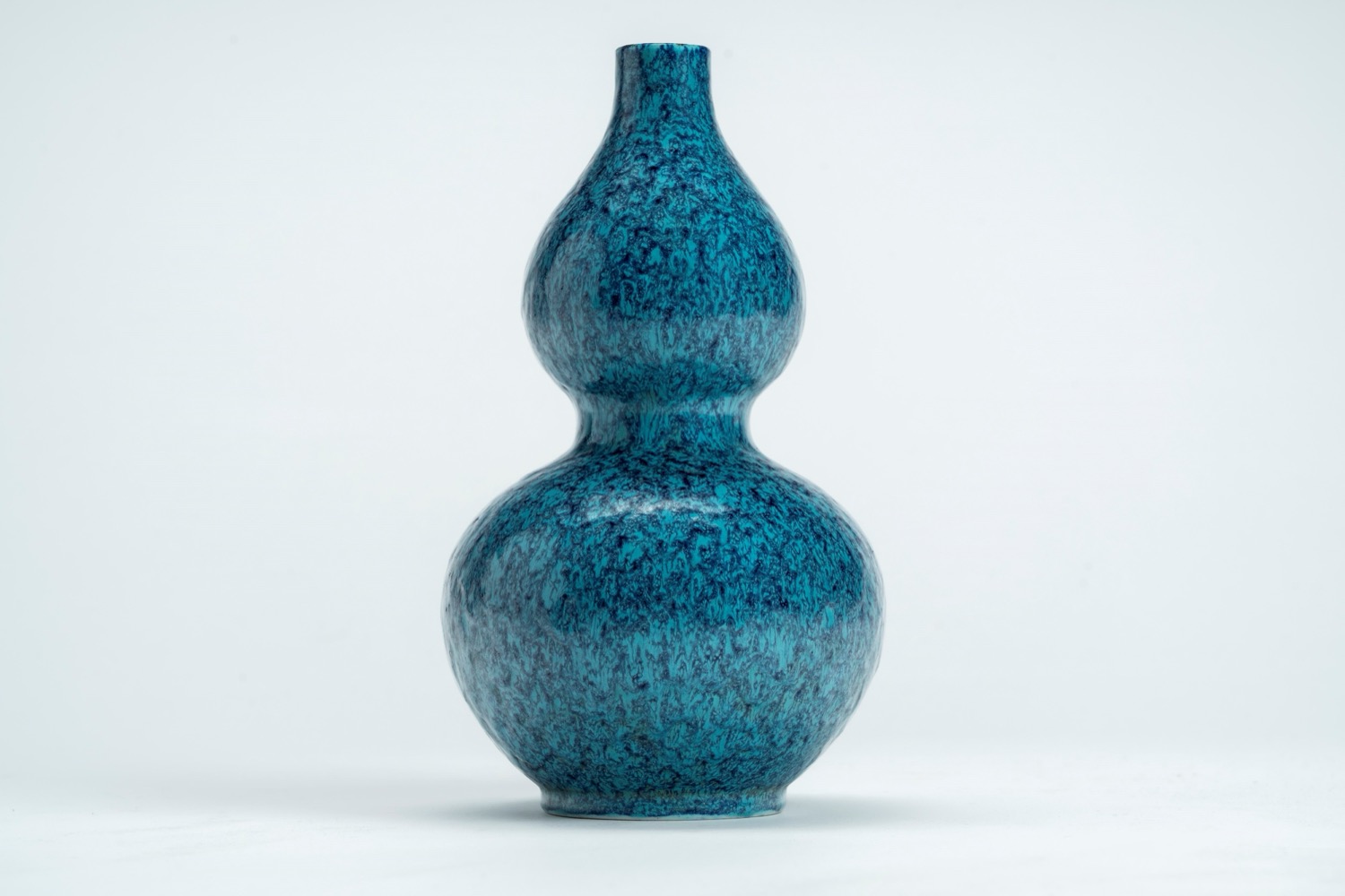 Vasetto a doppia zucca con invetriatura "robin’s egg". Cina, secolo XIX