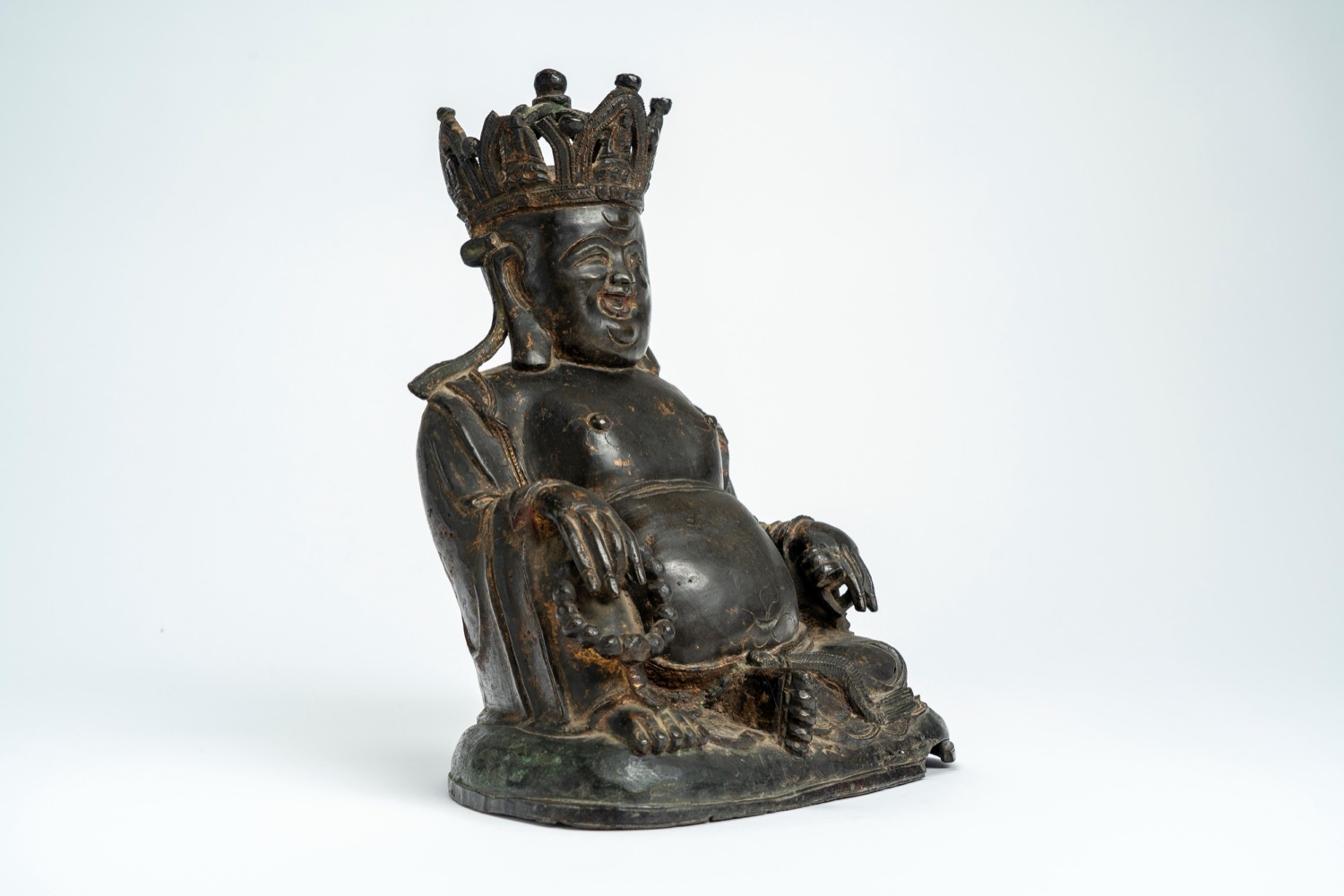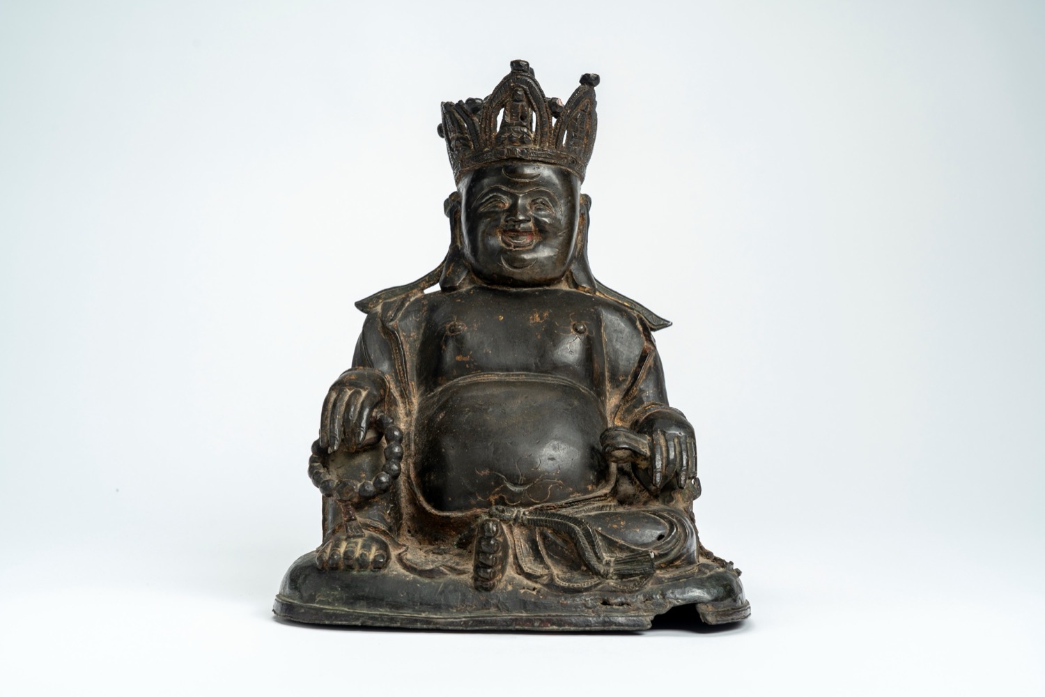 Budai in bronzo con tracce di doratura. Cina, dinastia Ming, secolo XVII