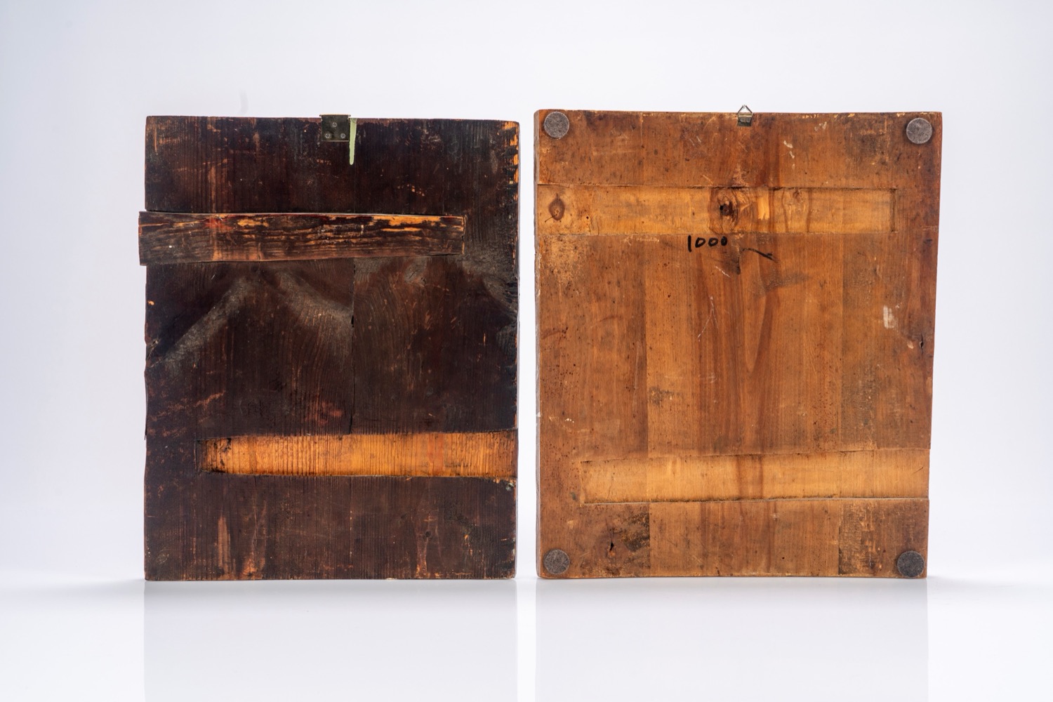 Due icone su tavola raffiguranti San Nicola Taumaturgo e Madre di Dio Gioia di tutti gli afflitti. Russia, secolo XIX