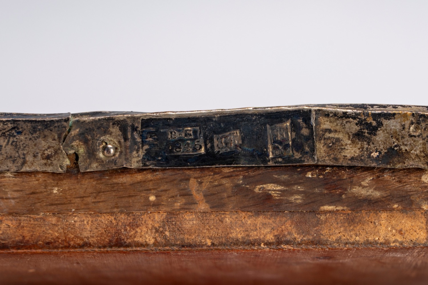 Riza sbalzata e cesellata con bordura a motivi vegetali, aureola coronata a raggiera aggettante. Punzone dell’assaggiatore Vasily Aleksandrovich Petrov, 1845, titolo 84 zolotniki, punzone della città datato 1844.