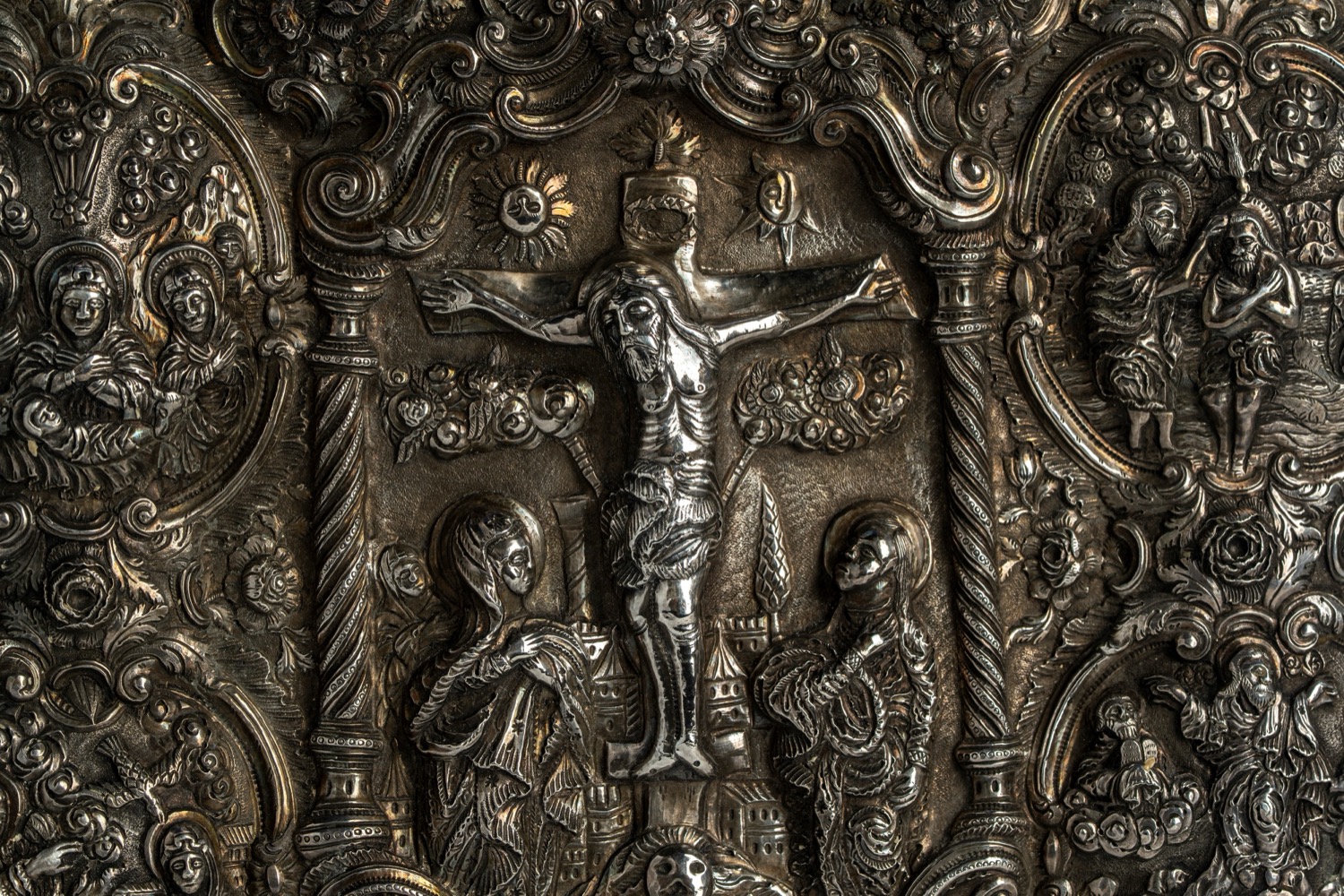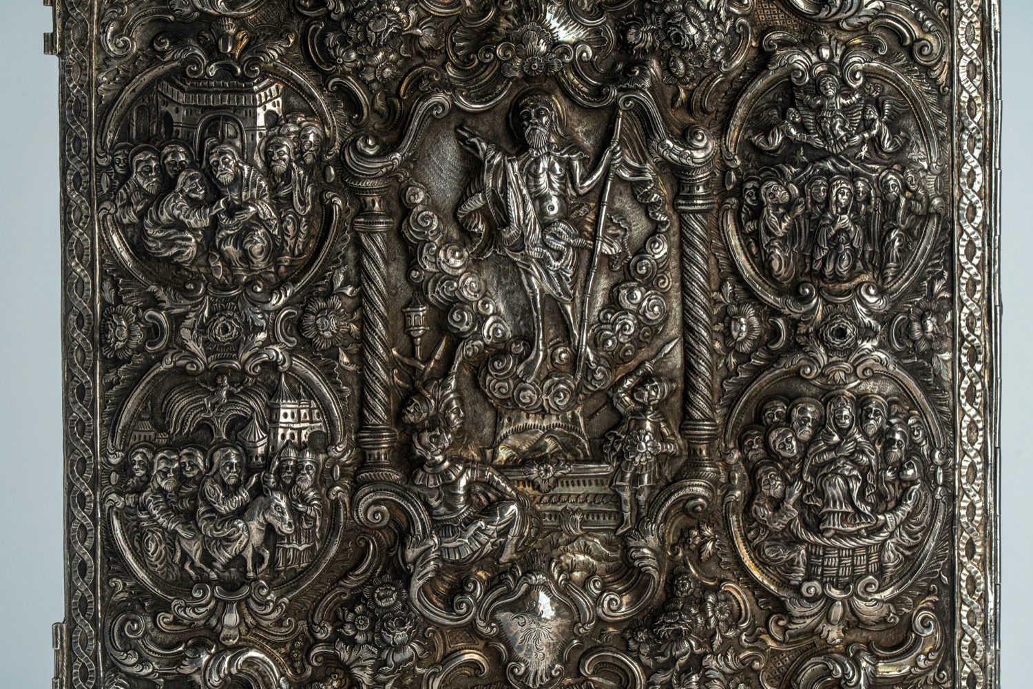 Coperta doppia di Evangeliario in argento riccamente cesellato e sbalzato. Russia, XIX secolo