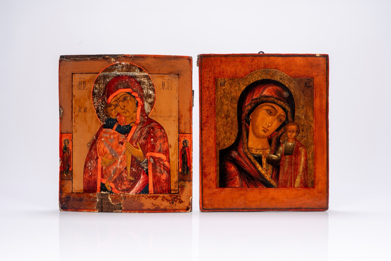 Due icone a tempera su tavola raffiguranti la Vergine Feodorovskaya e la Vergine di Kazan. Russia, inizio XIX secolo