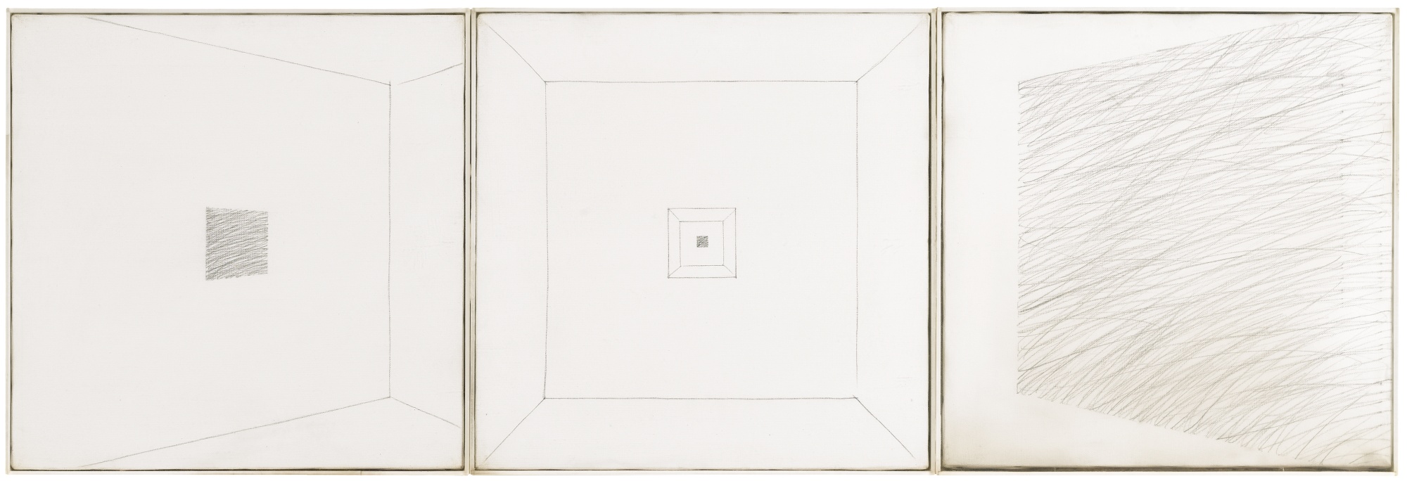 Giulio Paolini N. 1940 SUITE N. 1 firmato, intitolato e datato 1974 sul telaio del terzo elemento matita su tela preparata, 3 elementi cm 40x40 ciascuno, cm 40x124 misure complessive Provenance Collezione dell'artista Studio Marconi, Milano Zaira Mis, Bruxelles Collezione Privata, Torino Ivi acquistato dall'attuale proprietario Literature AA.VV., Giulio Paolini, Università di Parma, Centro Studi e Archivio della Comunicazione, Quaderno n. 30, Parma 1976, n. 191, illustrato Maddalena Disch, Le sette stanze dell'esposizione / L'opera in prospettiva (l'atto espositivo) , in Giulio Paolini. Premio Internazionale Koinè 2000 alla carriera, Milano 2001, p. 70, illustrato Maddalena Disch, Giulio Paolini. Catalogo ragionato. Tomo primo 1960-1982, Milano 2008, p. 288, n. 277, illustrato