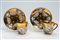Coppia di tazzine con piattino in porcellana a fondo dorato e a rilievo. Manifattura Ginori, seconda metà secolo XIX