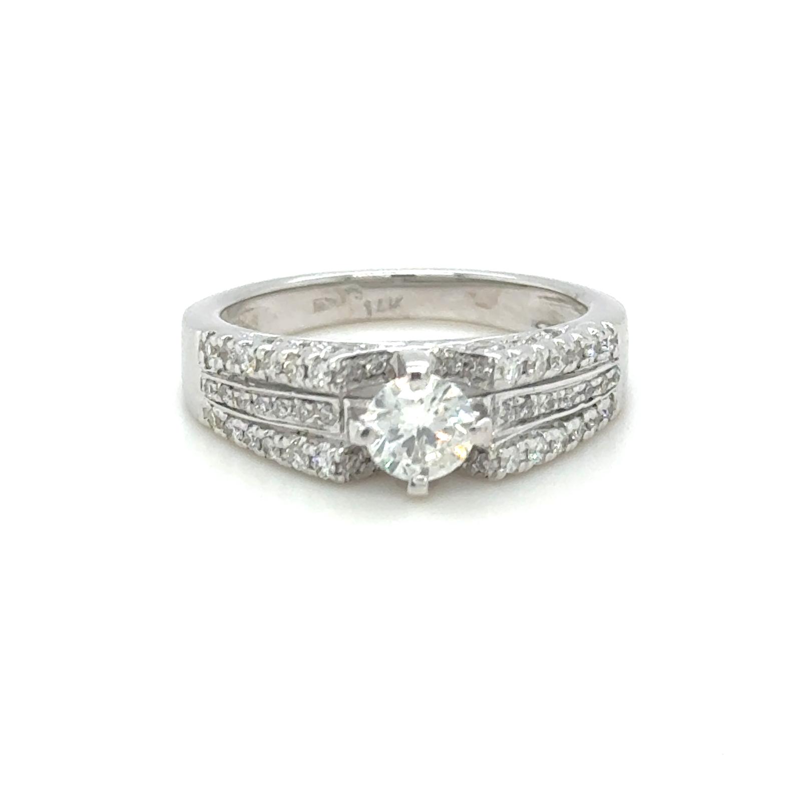 ANELLO IN ORO BIANCO 18k - 4.81 GR CON DIAMANTI : PEITRA CENTRALE BRILLANTE COLORE F VS 1-0.46 CT + BRILLANTI LATERALI D-F VVS-VS 0.54 CT TAGLIA: 6.5 CERTIFICATO LD GR - DH-R768 - COMMISSIONE D’ASTA 25%