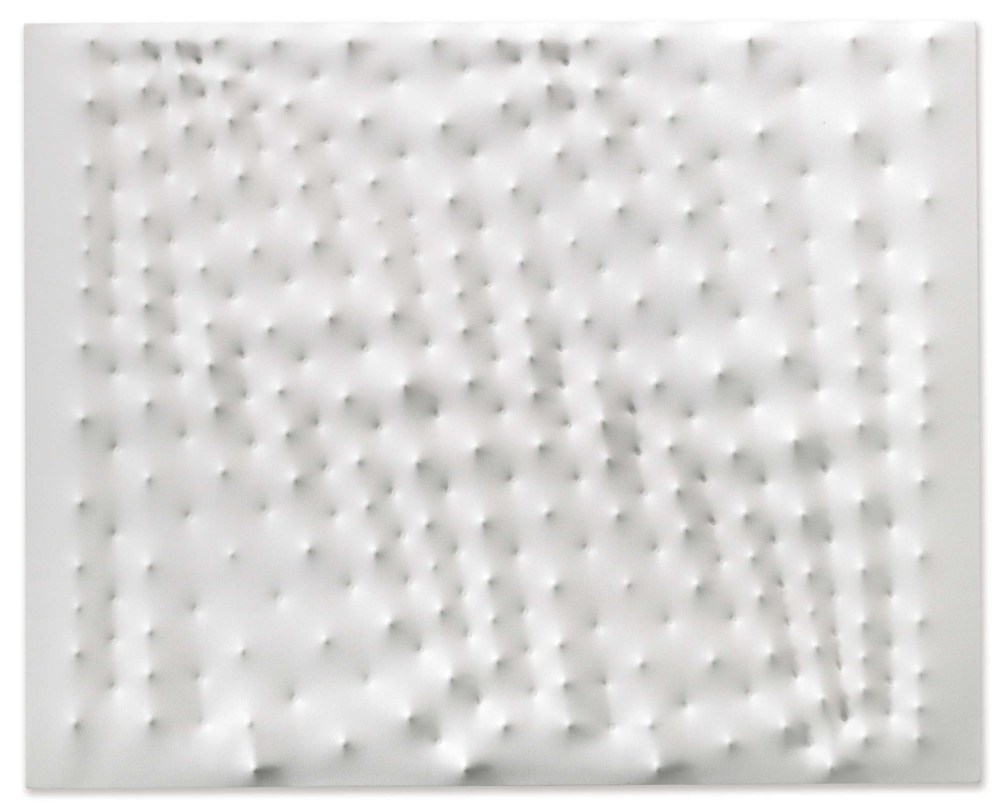 Enrico Castellani N. 1930 SUPERFICIE BIANCA firmato, intitolato e datato 1985 sul telaio acrilico su tela estroflessa cm 80x100 Authentication Opera registrata presso l'Archivio Castellani, Milano con il n. 85-040 L'opera è accompagnata da certificato su fotografia rilasciato dall'Archivio Castellani, Milano Provenance Acquisito dall'attuale proprietario direttamente dall'artista