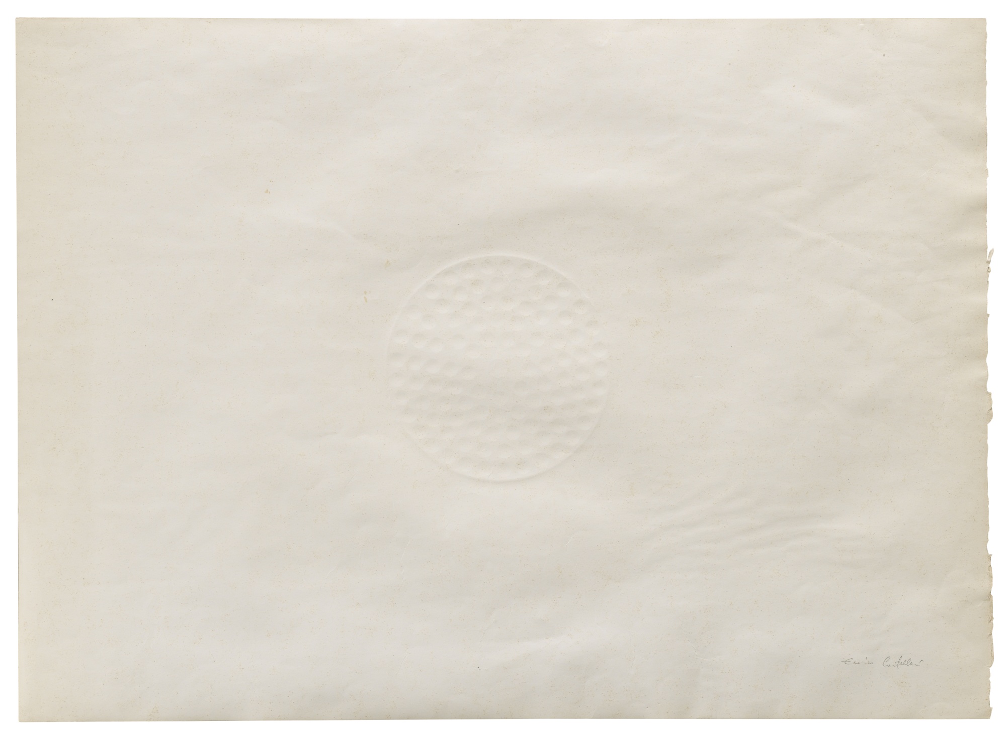Enrico Castellani N. 1930 SENZA TITOLO firmato carta a rilievo cm 50x69 Eseguito nel 1963 Authentication Opera registrata presso l'Archivio Castellani, Milano con il n. 63-031 L'opera è accompagnata da certificato su fotografia rilasciato dall'Archivio Castellani, Milano Provenance Galleria Il Mappamondo, Milano