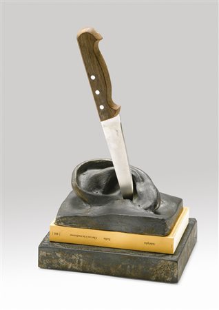 Claudio Parmiggiani N. 1944 CHE COS’È LA TRADIZIONE calco di orecchio in piombo, coltello, libro e ferro cm 34x20x14 Eseguito nel 1998 Authentication Opera archiviata presso l’Archivio Claudio Parmiggiani, Parma L'opera è accompagnata da certificato su fotografia rilasciato dall'Archivio Parmiggiani, Parma Provenance Galleria Claudia Gianferrari, Milano Ivi acquistato dall’attuale proprietario nel 2008 Exhibited Reykjavik, National Gallery, Parmiggiani, 2000 Montpellier, Musée Fabre de Montpellier, Claudio Parmiggiani, Sculpture d'ombre, 2002, p. 127-128, illustrato Bologna, Galleria d'Arte Moderna, Claudio Parmiggiani, 2003, pp. 67-70, illustrato Tel Aviv, Tel Aviv Museum of Art, Claudio Parmiggiani, 2003, pp. 99-100, illustrato Roma, Galleria dell'Oca, Claudio Parmiggiani, Pinxit et celavit, 2005, pp. 82-83, illustrato Bologna, Galleria de' Foscherari, Claudio Parmiggiani, Gloria di cenere, 2007, p. 35, illustrato Pistoia, Palazzo Fabroni, Claudio Parmiggiani. Apocalypsis cum figuris, 2007, pp.62-63, illustrato Catania, Palazzo Valle, Costanti del Classico dell'arte del XX e XXI Secolo, 2009 pp.216-217, illustrato Parma, Palazzo del Governatore, Chiesa di San Marcellino, Claudio Parmiggiani Naufragio con spettatori, 2010, pp.21, 22, 23,24,25, illustrato Literature Stefania Aluigi, Paole al margine degli occhi, in Parmiggiani, Torino 1998 Gianni Vattimo, Parmiggiani, Milano 2000 Peter Weiermair, Claudio Parmiggiani, Milano 2004, pp. 67-70