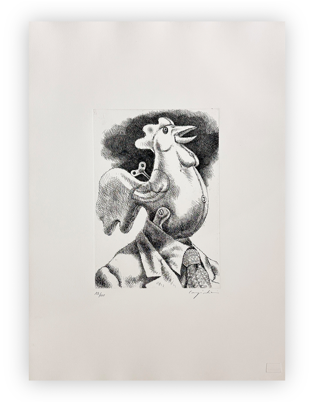 Firma e numerazione (Esemplare 18/100) a matita al fronte