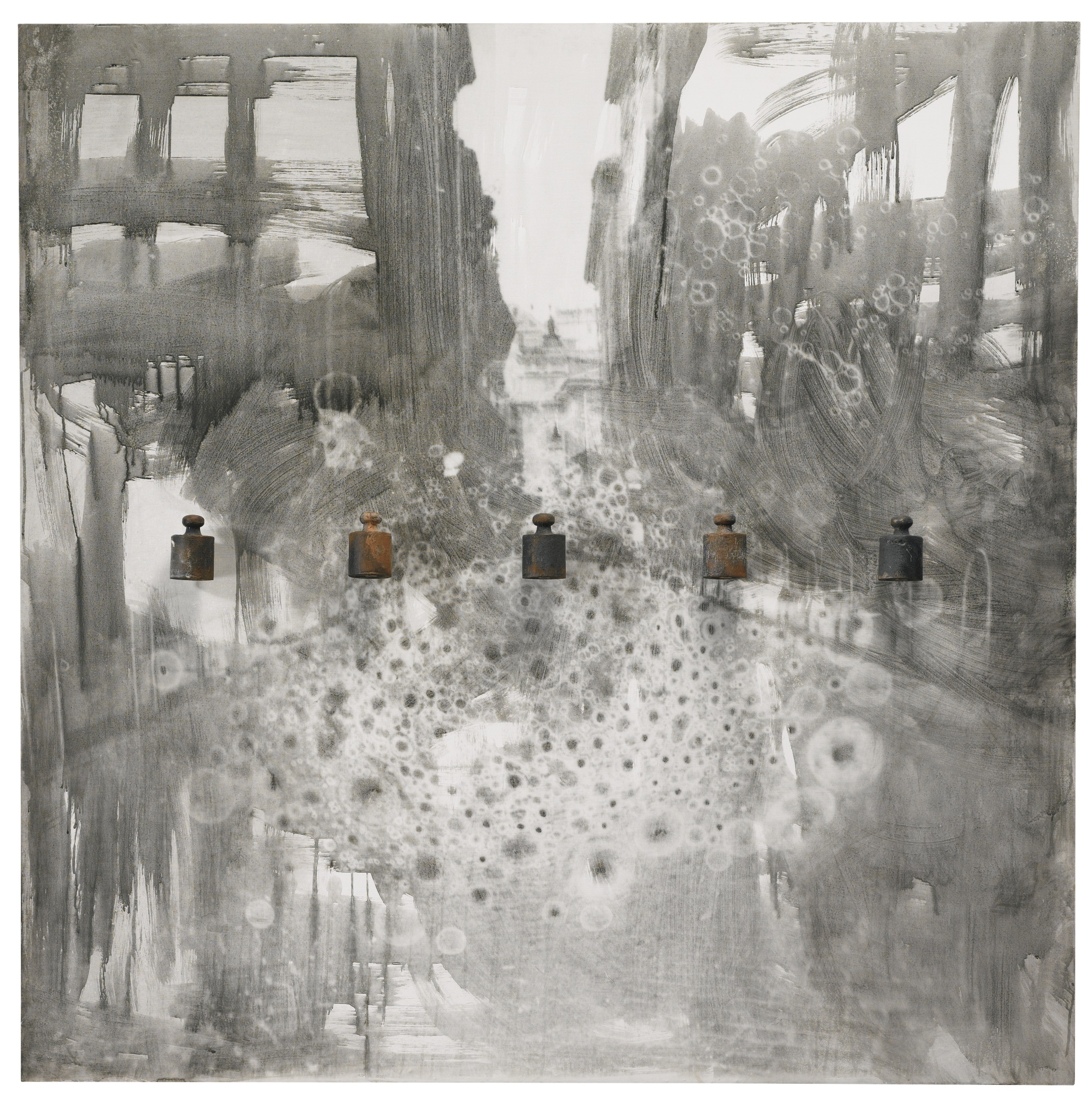 Massimo Kaufmann N. 1963 OGNI GIORNO firmato, intitolato e datato 1996 sul retro acrilico e piombo su tela cm 140x140