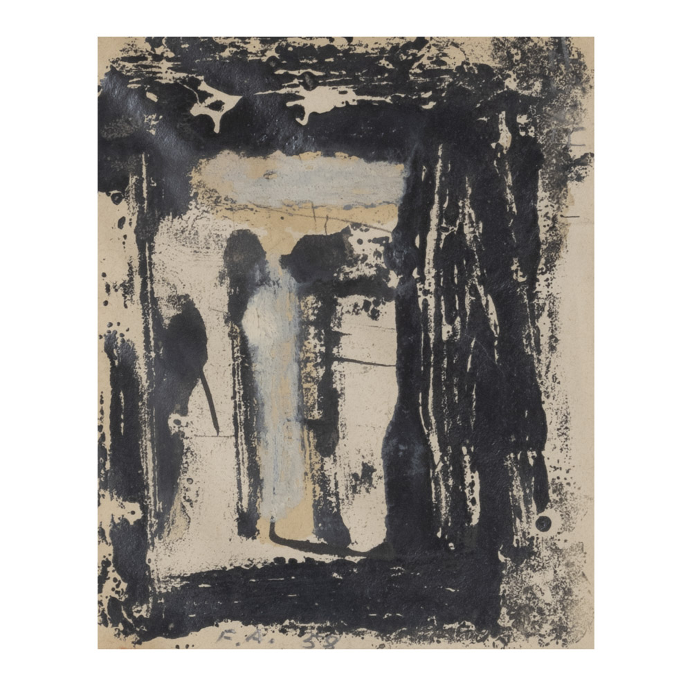 "Senza titolo"195815,5x12,5 cm.olio su carta, siglato e datato in basso al centro, entro cornice