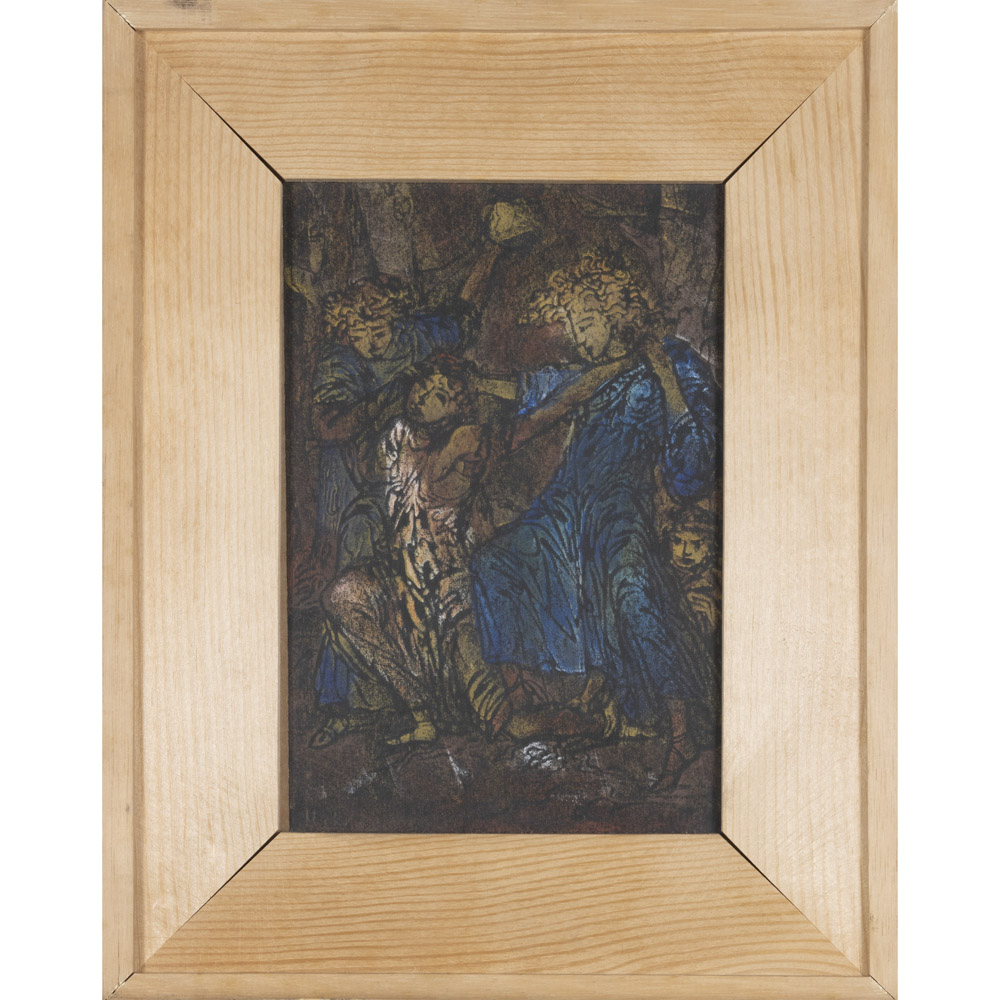 "Senza titolo"anni '5021x14,5 cm.frottage con pastello ceroso a olio su carta, firmato in basso a sinistra, entro cornice