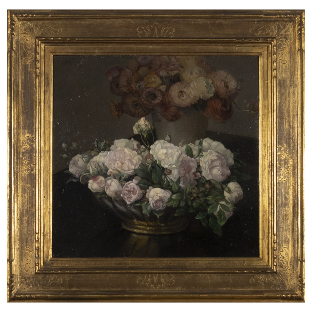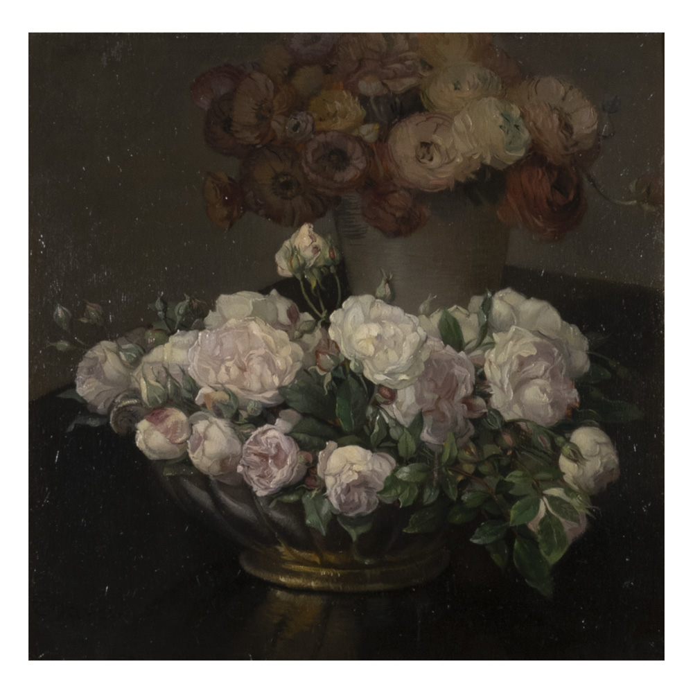Emilia Zampetti Nava (Camerino 1883 - Roma 1970) "Vaso con peonie e rose bianche"