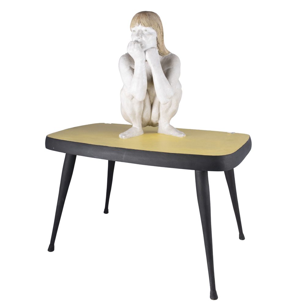 "Alma nuda su un tavolo da cucina"200362x50x31 cm.bronzo policromo, es. 3/6, firmato e datato sul retro