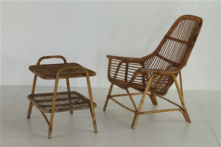 COSLIN GEORGE Per Gervasoni. Poltrona e tavolino. . Vimini. . Misure poltrona cm 94x76x76cm, tavolino cm 48x49x52.