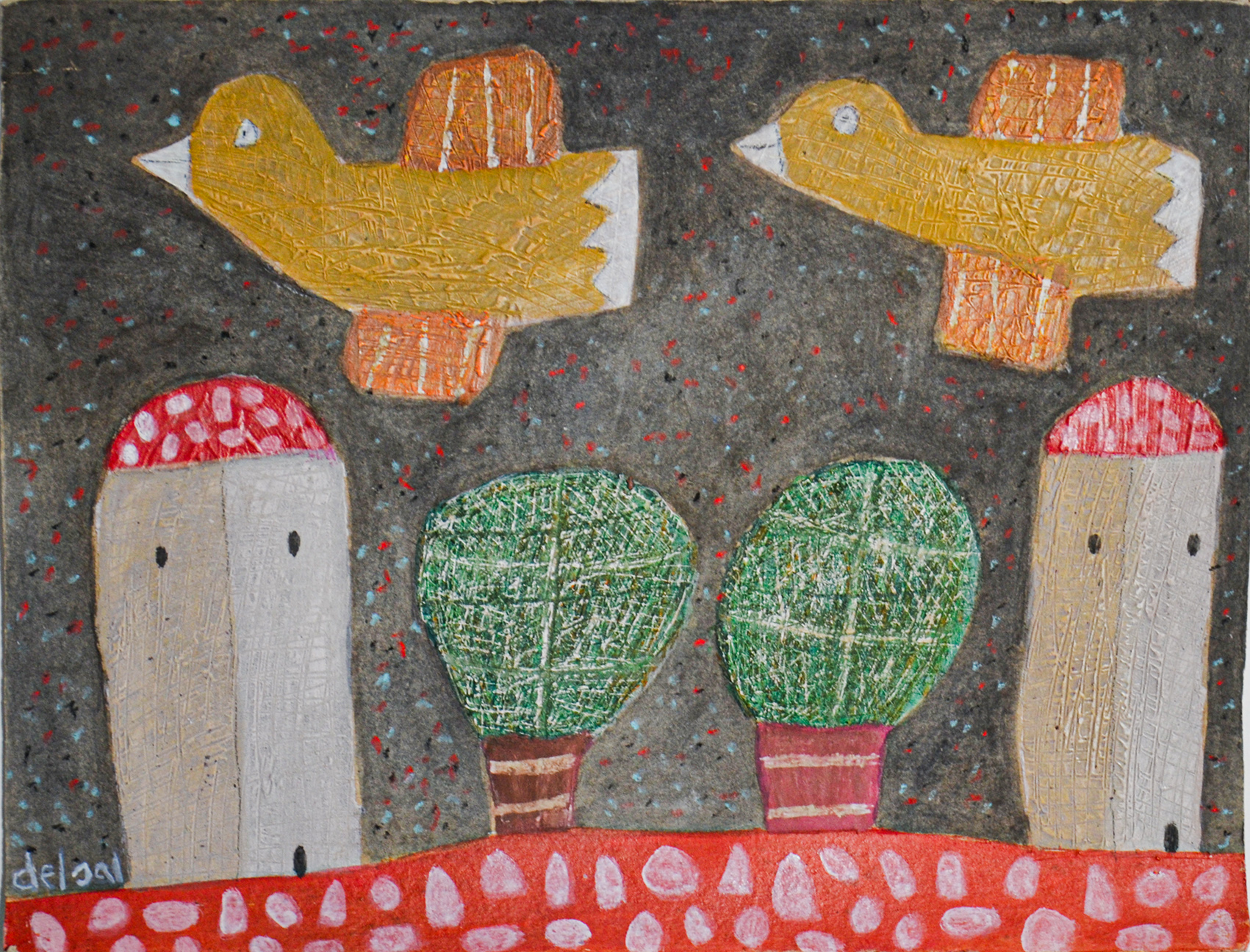 LUIGI DEL SAL, Paesaggio notturno con volo di uccelli