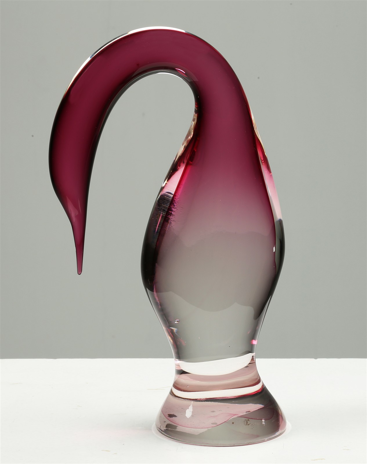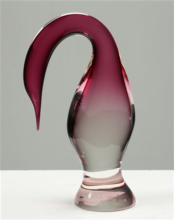 VETRERIE SEGUSO Cigno. Vetro di Murano. Cm 18,00 x 30,00 x 10,00. Firma a graffio alla base.