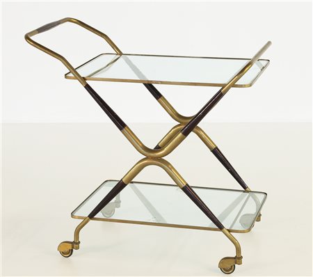 MANIFATTURA ITALIANA XX SECOLO Carrello portavivande. Cristallo, legno e...