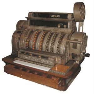 Registratore di cassa in ottone nickelato, USA fine XIX secolo