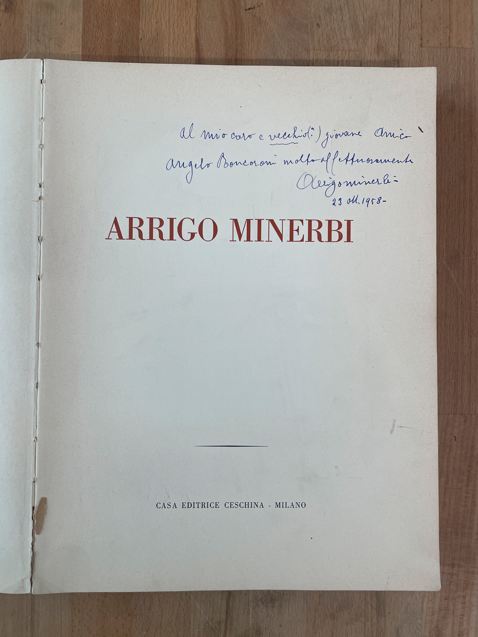 Catalogo riccamente illustrato, recante firma e dedica ad personam di Arrigo Minerbi datata 1958, edito in edizione limitata (Esemplare 1062/1500)