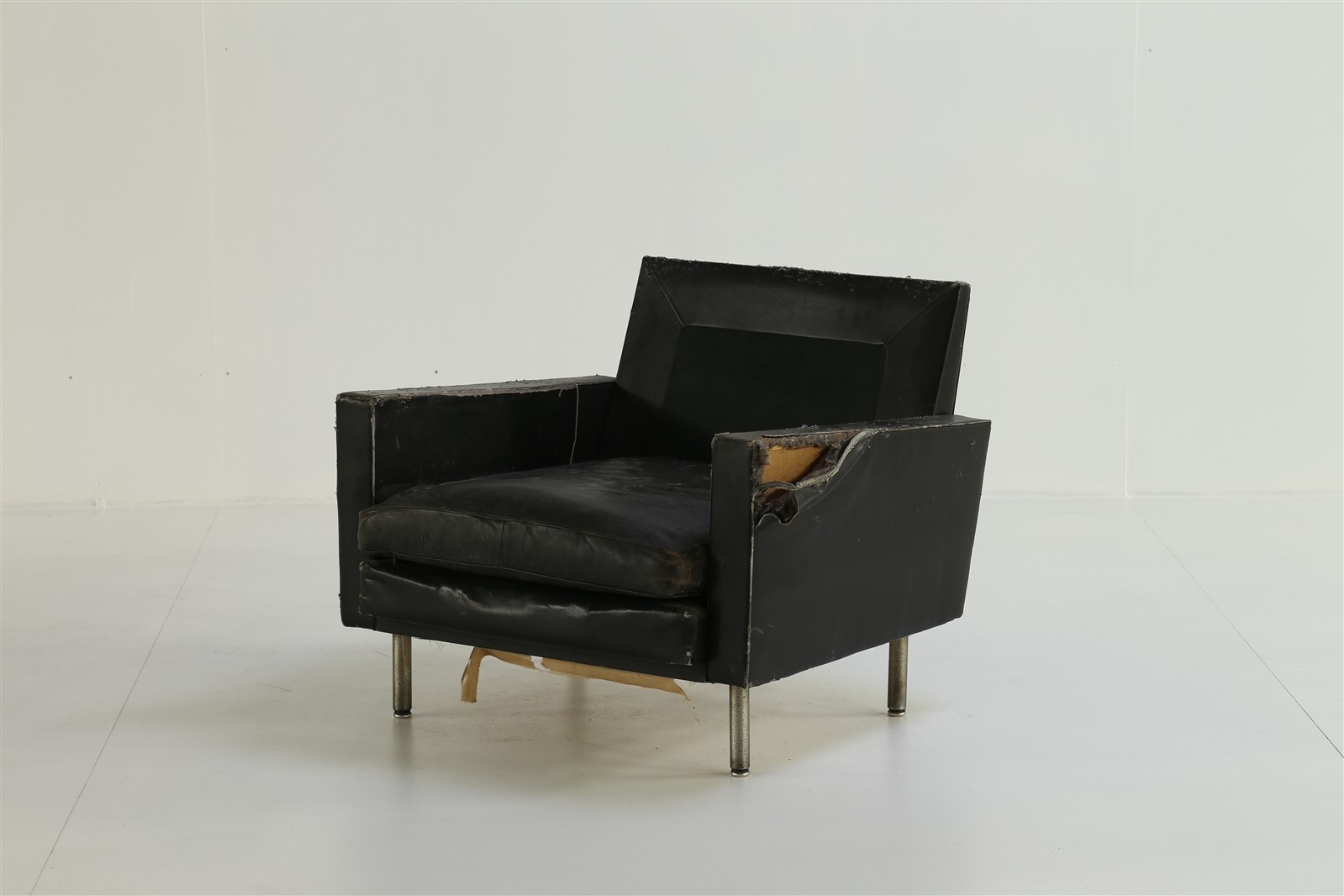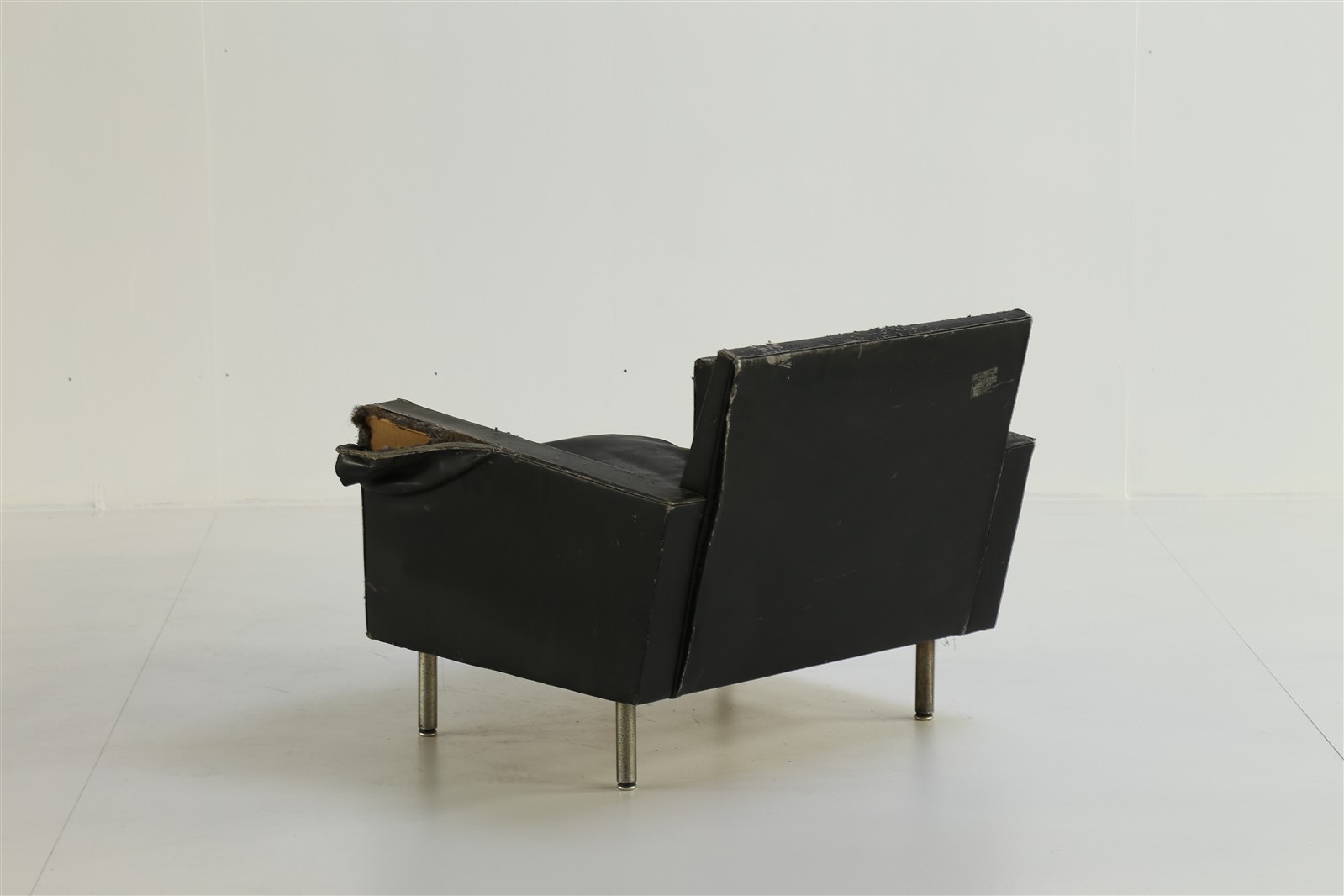 NELSON GEORGE (1908 - 1986) Poltrona imbottita. Metallo, pelle. Cm 78,00 x 67,00 x 82,00. Produzione Herman Miller. Cornice presente