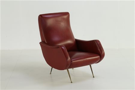 MANIFATTURA ITALIANA DEL XX SECOLO Poltrona. Ottone e skai. Cm 82,00 x 88,00 x 71,00. Presenti difetti. Anni '50. Skai e gambe in ottone.