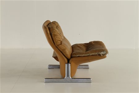 DAL LAGO ALBERTO Per Brunati. Poltrona Pellicano. Metallo cromato, pelle. Cm...