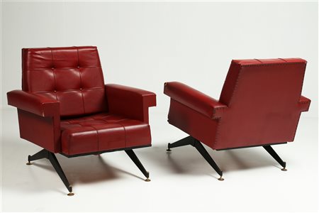 MANIFATTURA ITALIANA DEL XX SECOLO Lotto composto da n.2 poltrone A60. Metallo e skai. Cm 72,00 x 66,00 x 73,00. Anni '50.