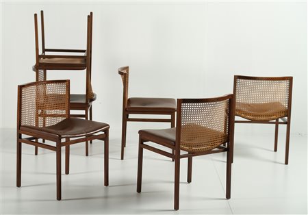 MANIFATTURA ITALIANA DEL XX SECOLO Lotto composto da n.6 sedie. Pelle, paglia, legno. Cm 48,00 x 73,00 x 42,00. Prodotte per Gavina.