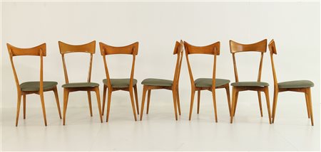 PARISI ICO (1916 - 1996) Alla maniera di. Lotto composto da n. 7 sedie. Legno. Cm 42,00 x 94,00 x 43,00.