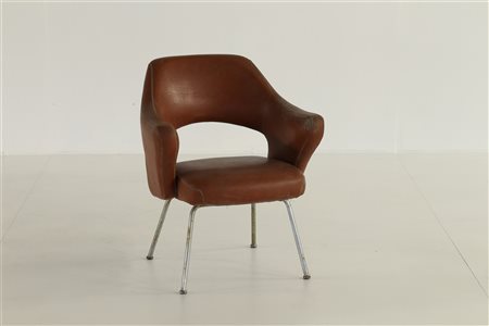 RINALDI GASTONE Per Rima, Padova.Poltrona. Metallo e skai. Cm 67,00 x 82,00 x 58,00. Difetti del cromo. Anni '60.