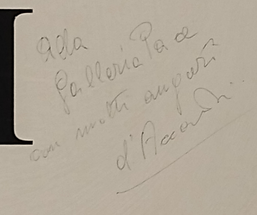 Locandina firmata dall' artista nel 1975, in occasione della mostra personale alla Galleria Pace Milano e dedicata allo stesso.