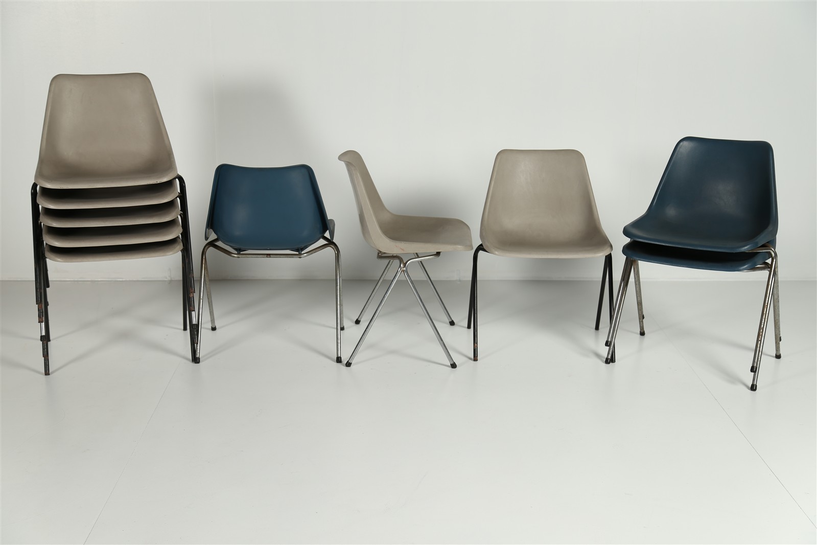MANIFATTURA ITALIANA DEL XX SECOLO Lotto composto da n.10 sedie. Metallo cromato, ABS. Cm 50,00 x 73,00 x 45,00.