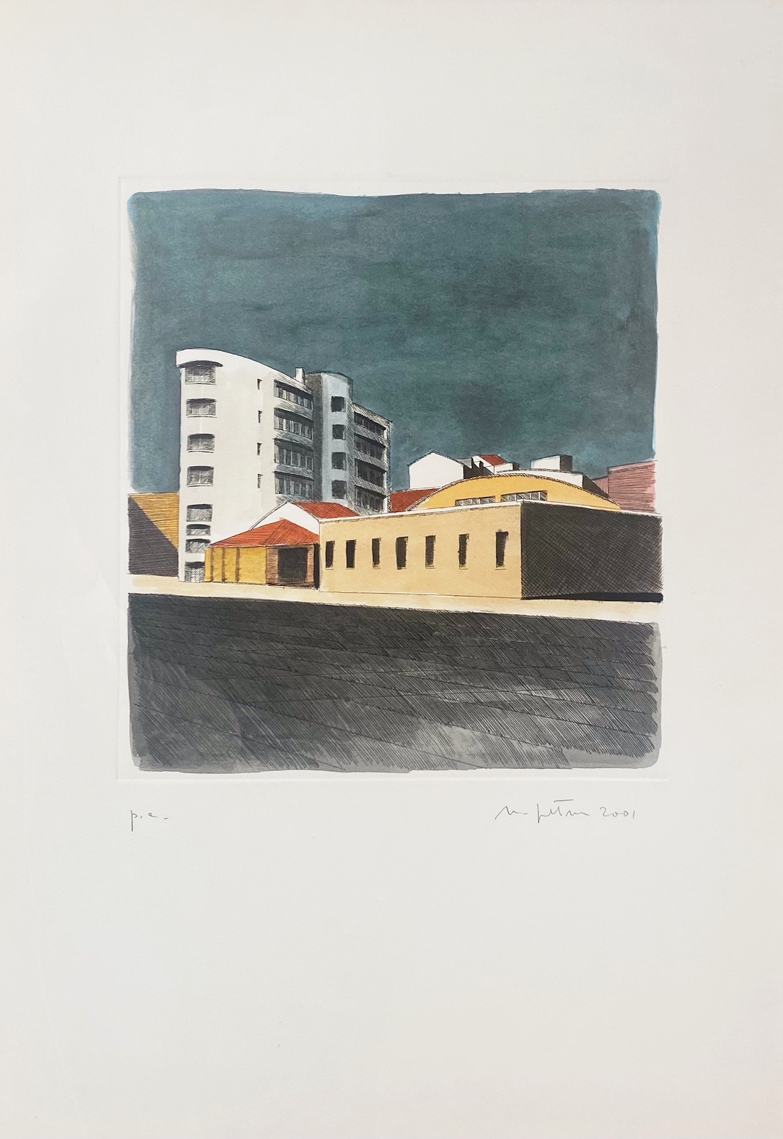 Lotto 131 | PETRUS MARCO Rimini (Rm) 1960 Paesaggio urbano 2001 Acquaforte acquarellata a...