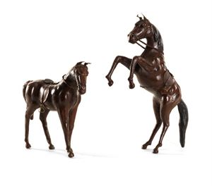 COPPIA DI CAVALLI IN CUOIO Coppia di cavalli in cuoio, Inghilterra inizi XX...